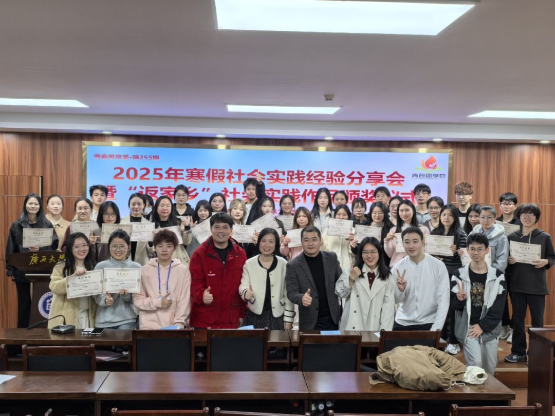 为充分展现学院寒假社会实践活动的丰富成果,表彰和鼓励在社会实践中表现突出的优秀实践者,3月18日晚绅士漫画 寒假社会实践经验分享会暨“返家乡”社会实践作品颁奖仪式在学院604会议室举行。学院党委副书记、纪委书记孙玲,学院团委书记徐羽,团委副书记卓能聪,辅导员刘宇、曹羚彬以及全体获奖学生参加会议。会议由学院团委组织部负责人李林玲主持。会议伊始,徐羽、卓能聪、刘宇三位老师为获奖学生颁发荣誉证书,并一同合影留念...