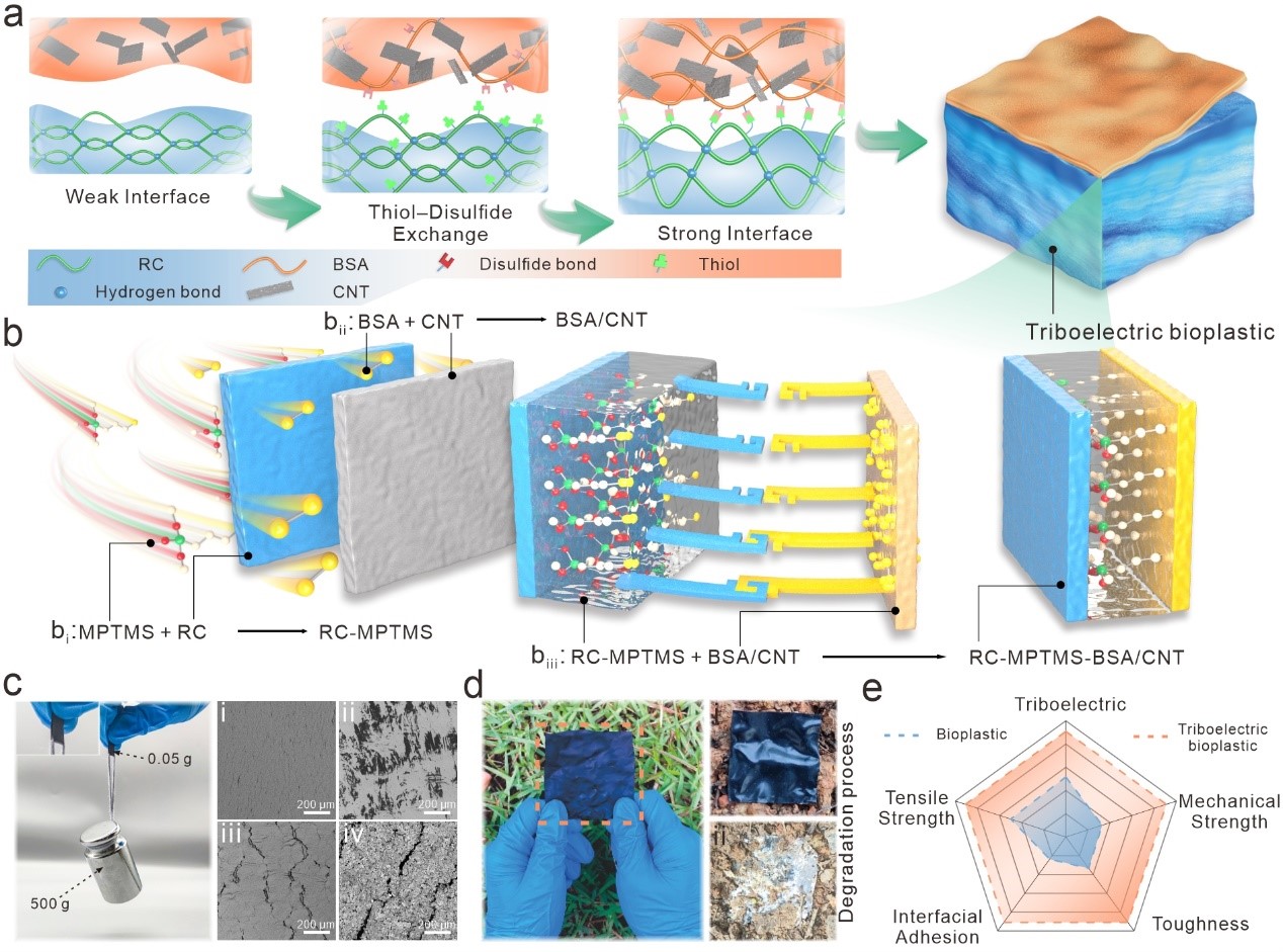 王双飞院士团队“先进木质纤维材料”课题组基于纤维素优异的可降解性和摩擦电特性,通过动态共价化学方法构建了一种坚固的摩擦电生物塑料,解决了绿色电子产品中聚合物基材与导电涂层界面易剥离破碎的难题。该研究成果以“A Tough Monolithic Integrated Triboelectric Bioplastic Enabled by Dynamic Covalent Chemistry”为题发表于材料领域国际顶级期刊《Advanced Materials》上,绅士漫画