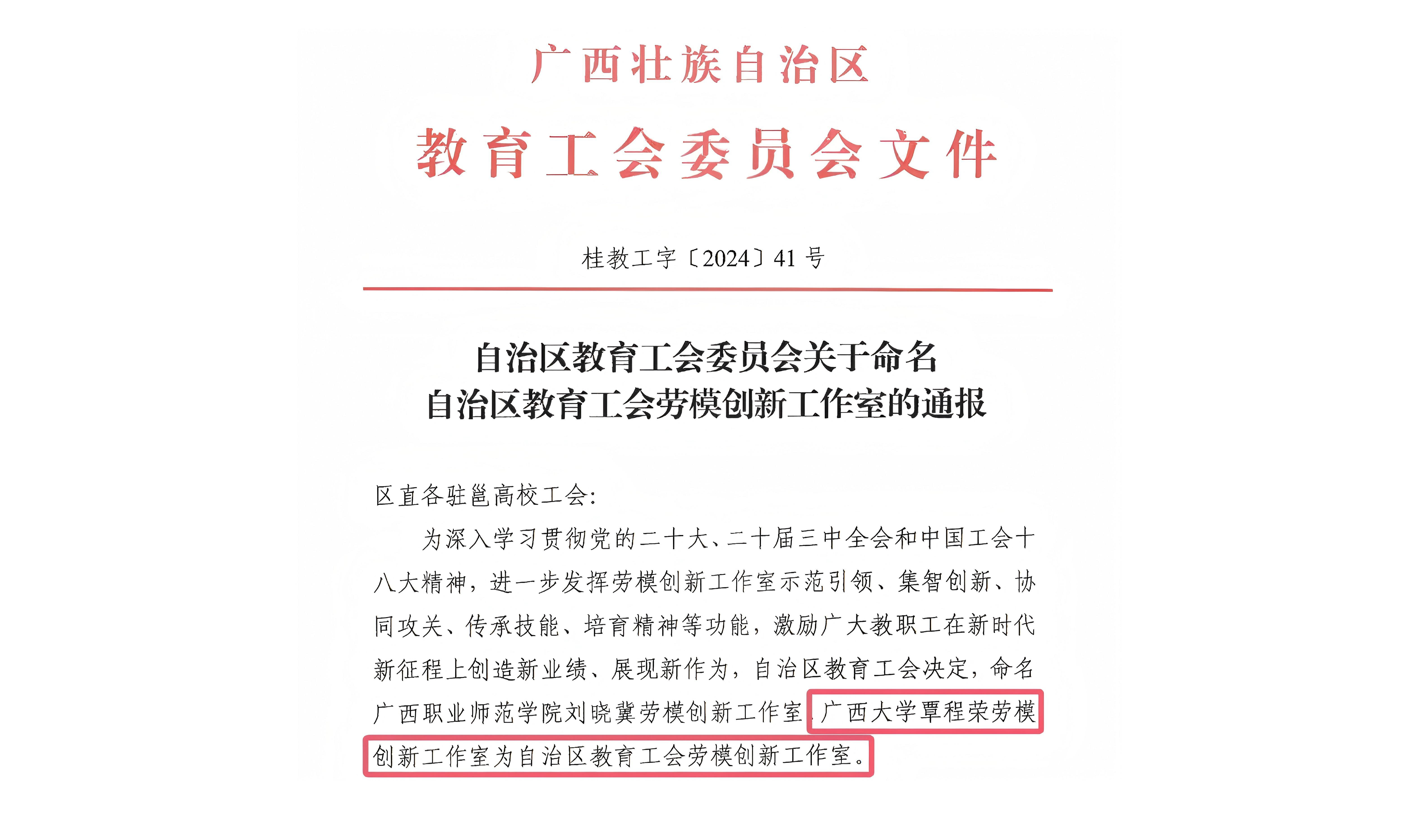 覃程荣劳模创新工作室被命名为“自治区教育工会劳模创新工作室”。