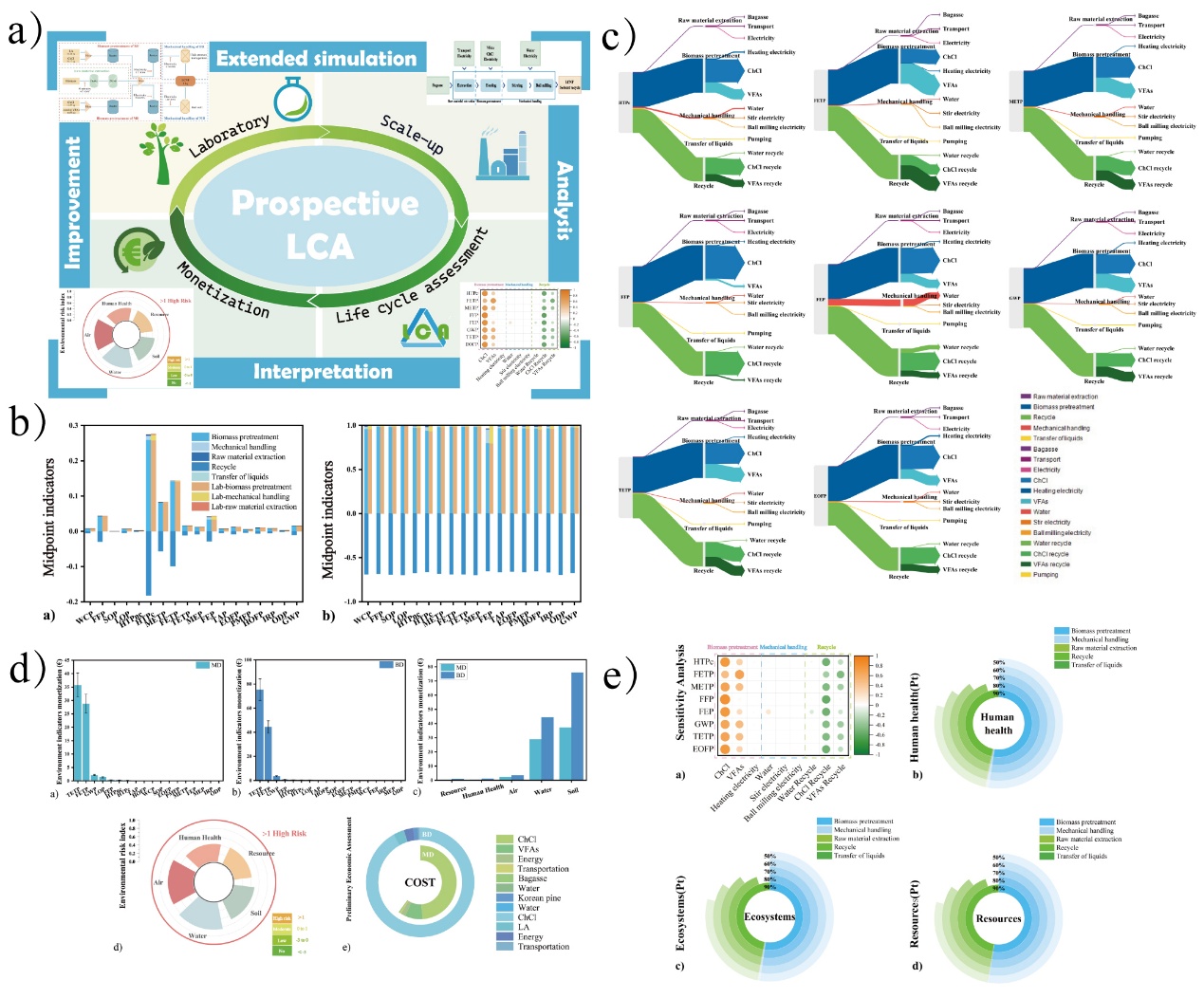 该研究将pLCA框架系统应用于预处理体系,以实验室数据为基础,预测工业规模下的碳足迹、水足迹等关键环境影响,并将环境绩效与技术转型风险直接关联,为木质纤维素绿色精炼技术从实验室走向产业化提供了科学依据与风险预判,也为广西丰富生物质资源的高值化利用开辟了新路径。