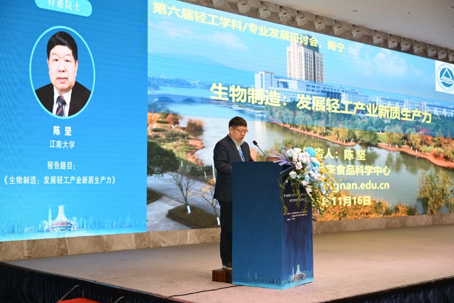 国务院学位委员会轻工技术与工程学科评议组召集人、教育部高等学校轻工类专业教学指导委员会副主任委员陈坚院士致辞