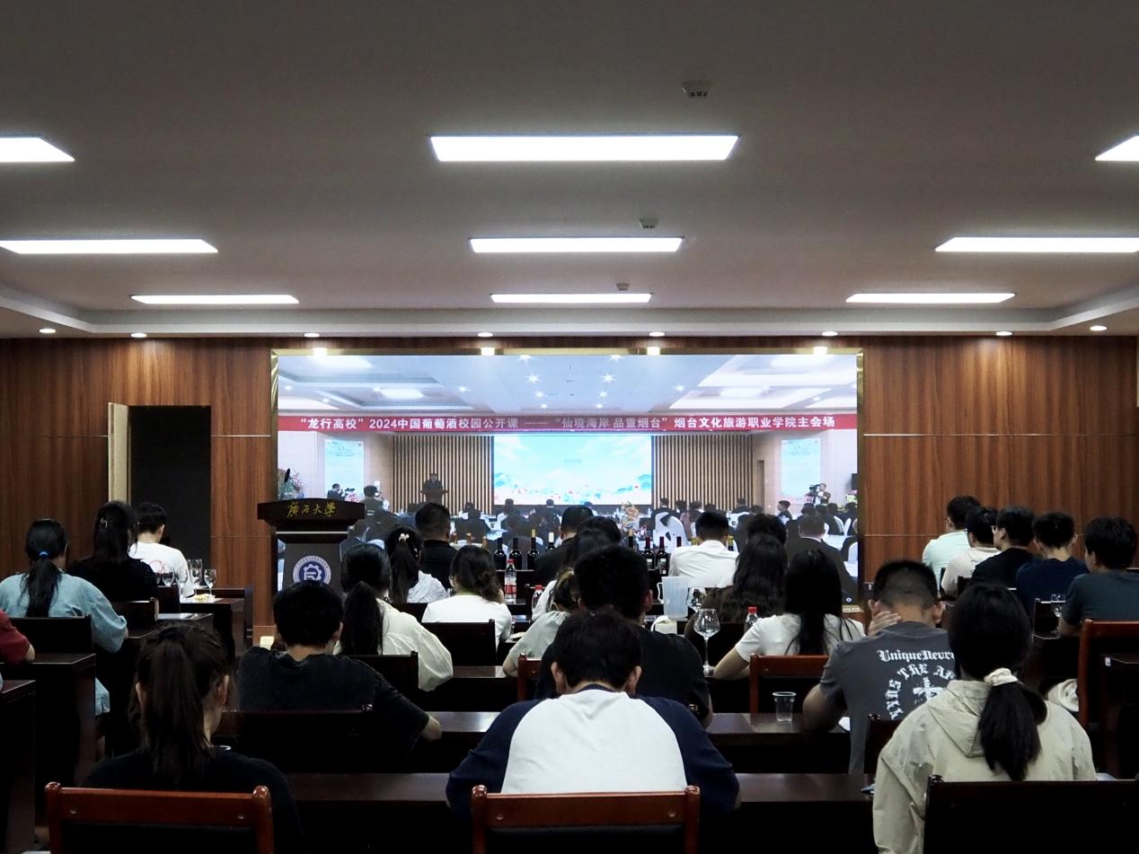 精心组织了40余名师生代表,通过线上线下相结合的方式参与了本次公开课。公开课主会场设在烟台文化旅游职业学院,是2024“龙行高校”中国葡萄酒校园系列的第四课,吸引了包括清华大学、北京大学、中国人民大学等50所代表性高校的同步参与。
