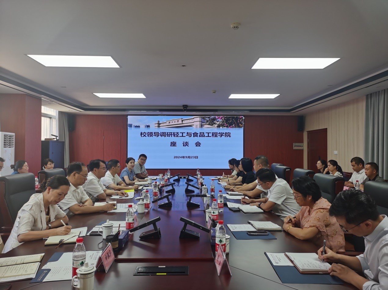 校党办校办、人力资源处、发展规划处、教务处、科研院、后勤基建处、发展规划处等相关负责人,轻工学院领导班子及各系、中心负责人参加调研座谈会。