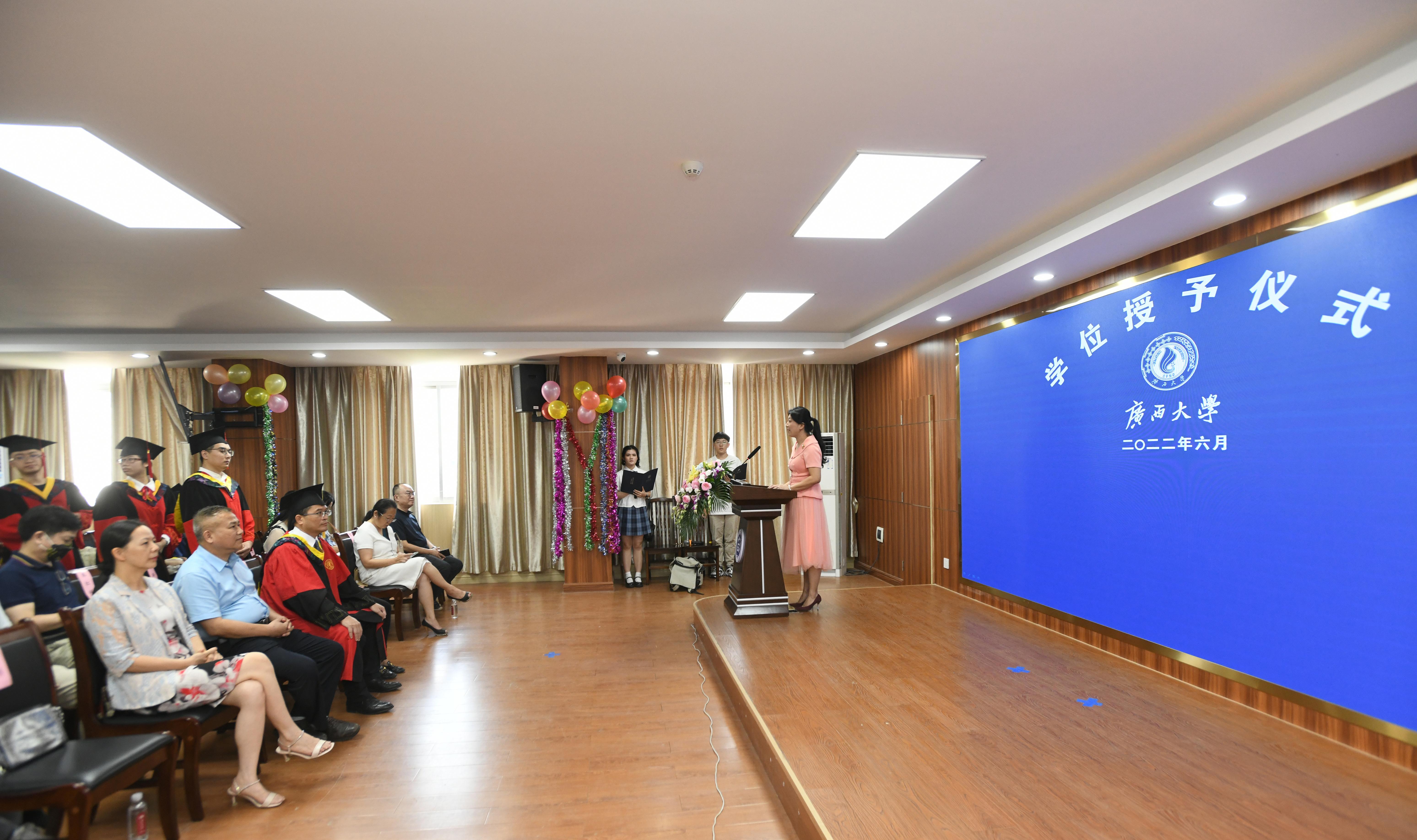 2022届学位授予仪式暨毕业欢送会在学院604室、202室举行。学院党委书记许树沛,学院党委副书记、院长覃程荣,研究生院副院长刘小玲等领导出席活动。学院领导班子成员、博士生导师代表、系主任、毕业班班主任等齐聚欢送会,共同为2022届全体毕业生送上最诚挚的祝福。
