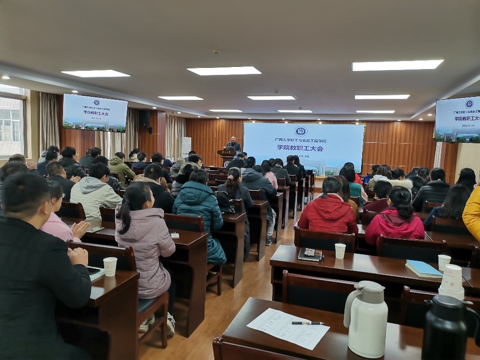 会上,学院党委副书记唐旭彬同志,副院长黄崇杏、闵斗勇、林莹等同志,教育部糖业中心主任李凯同志,院长助理梁辰、王勤志等同志分别对2021年各自分管的工作进行总结并对2022年度工作进行部署。院长覃程荣代表学院领导班子作学院2021年度主要工作情况汇报并对2022年度工作进行部署。