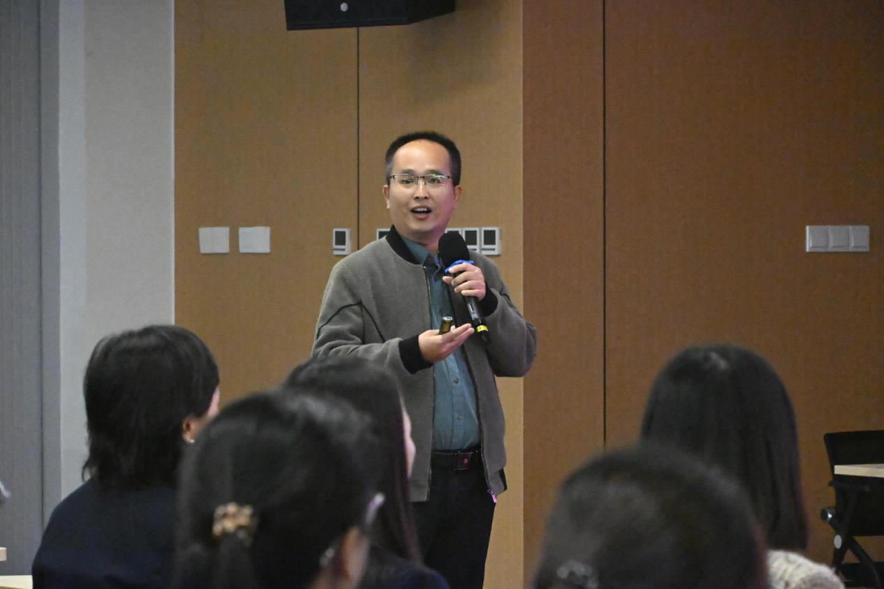 随后,全体人员前往教职工活动中心517,开展急救知识科普。活动邀请了校工会党支部党员陈星明进行授课,他结合真实案例,生动形象地讲解了心肺复苏(CPR)的操作要领、适用场景及注意事项,并介绍了AED使用方法。