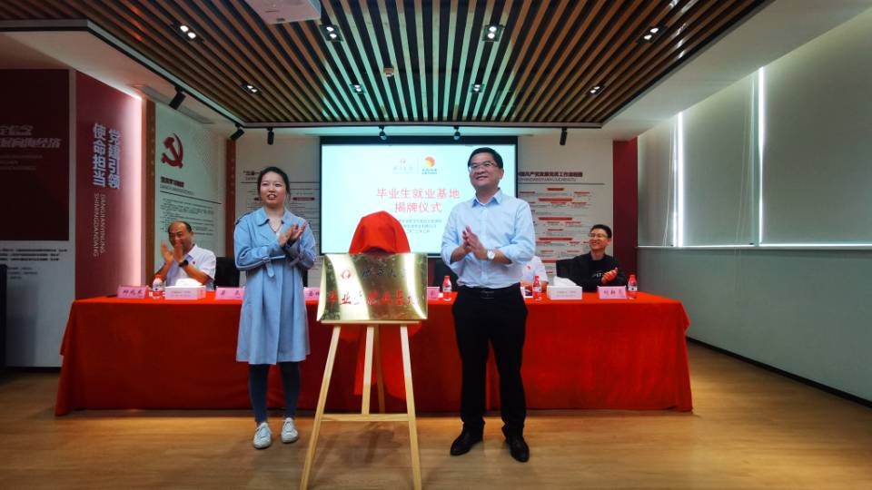 毕业生就业基地协议签约暨揭牌仪式。广西太阳纸业有限公司副总经理李刚、北海市铁山港区委组织部副部长、公务员局局长(兼)岳琳茵、绅士漫画
