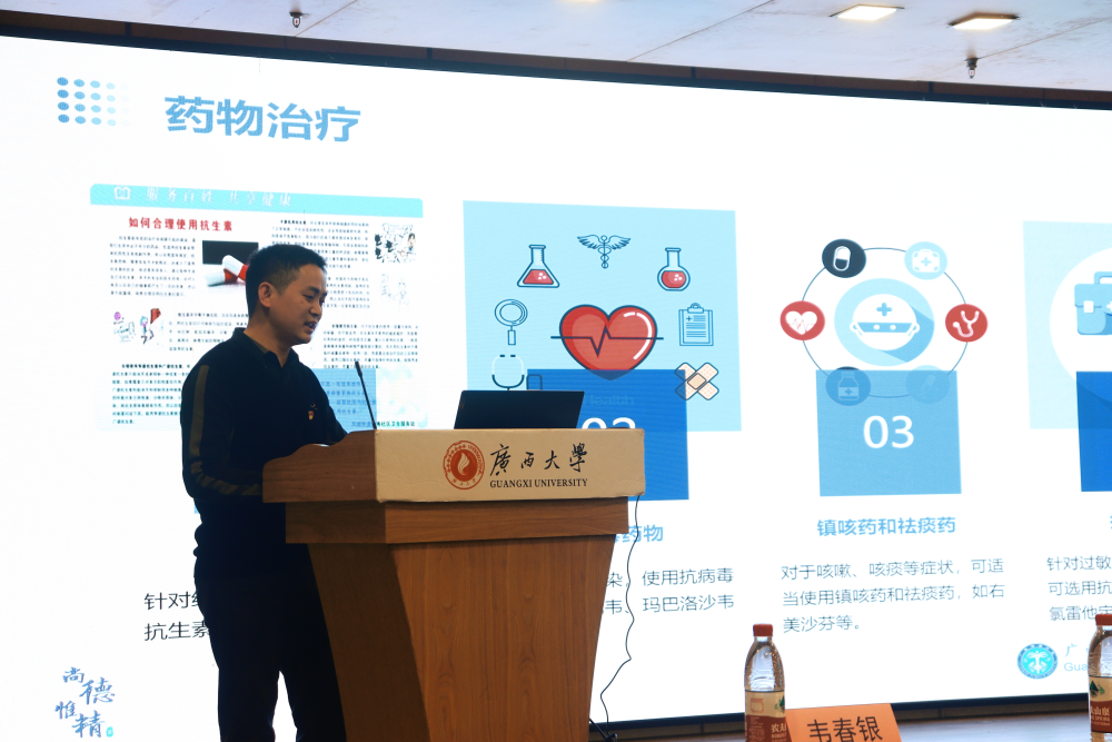消化呼吸内科主治医师姚伦凯则针对春季呼吸道疾病高发的特点,讲解呼吸疾病的预防知识,进一步提升了师生的健康防护意识。