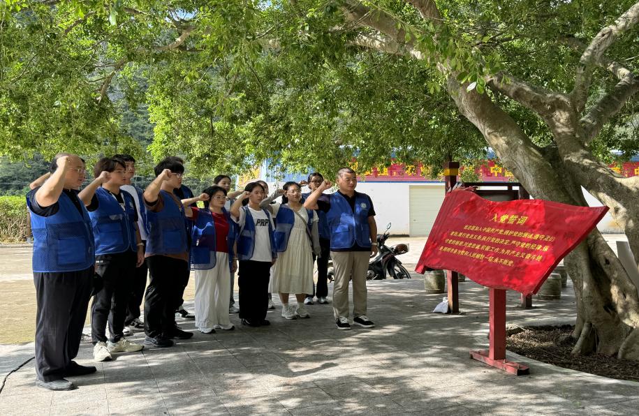 从挖山凿洞到土地流转出租,从荒芜到硕果遍地,立屯人民在党的带领下,自力更生,创造了美好的生活。我们感慨开山凿洞“宁愿苦干、不愿苦熬”的精神力量,大榕树旁的我们再次重温入党誓词,在铮铮誓言中牢记初心使命,立志在火热实践中争做有理想、敢担当、能吃苦、肯奋斗的新时代好青年。