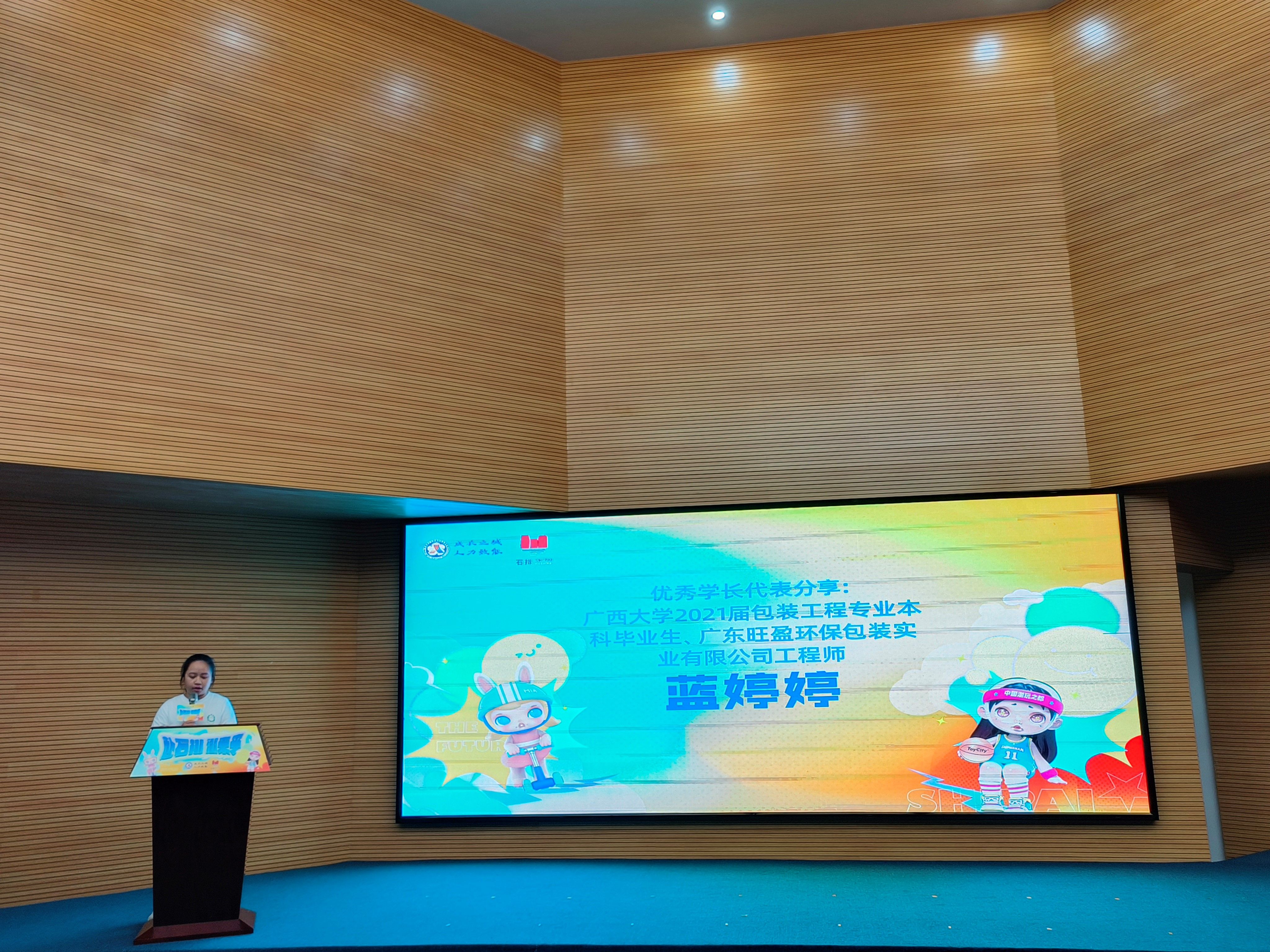 2021届包装工程毕业生、现任旺盈企业工程师的蓝婷婷,分享了她在东莞的工作与生活经历,以及个人成长与收获的点滴。她的分享为在场的大学生提供了宝贵的职业经验,激发了他们对东莞发展的深入了解和对职业发展的坚定信心。随后还举行了校企共建实习实践基地协议签订仪式、产教融合型优秀企业颁奖等活动。