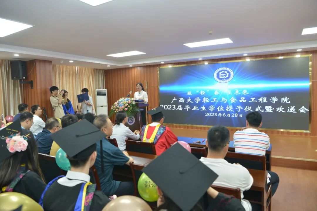 2023届毕业生学位授予仪式暨毕业欢送会在学院举行。学校研究生院院长、副教务长刘小玲、学院党委副书记、院长覃程荣,以及学院领导班子成员、绅士漫画