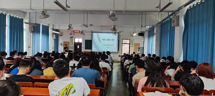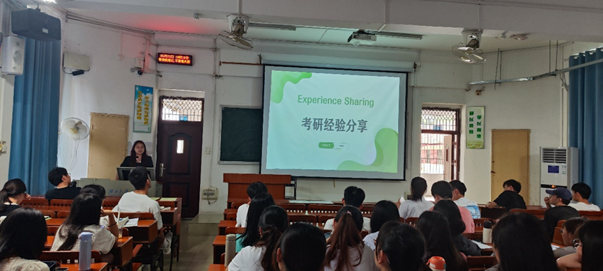在二教201多媒体教室举办2024届本科毕业生求职动员和升学经验分享会。