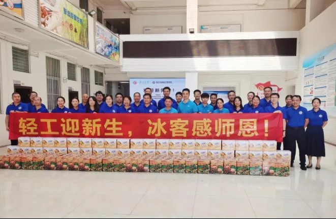 校友企业广西冰客食品有限公司慷慨捐赠果汁饮料,为新生和教职工送去清凉与关怀,彰显了校友企业的社会责任感与对母校的深厚情谊,为炎炎夏日中的迎新工作增添了一抹清凉,增强了新生的归属感和自豪感。
