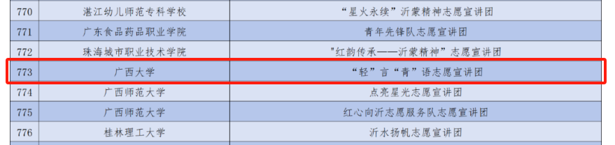 入选团队将按照团中央青年志愿者指导中心相关要求,秉持“青年讲给青年听,青年讲给社会听”的理念,继续探索“三进四式”青年领学宣讲模式,持续在实践育人中凝练志愿宣讲工作品牌,让青年宣讲强信心、暖人心、聚民心、筑同心,用实际行动践行“奉献、友爱、互助、进步”的志愿服务精神。
