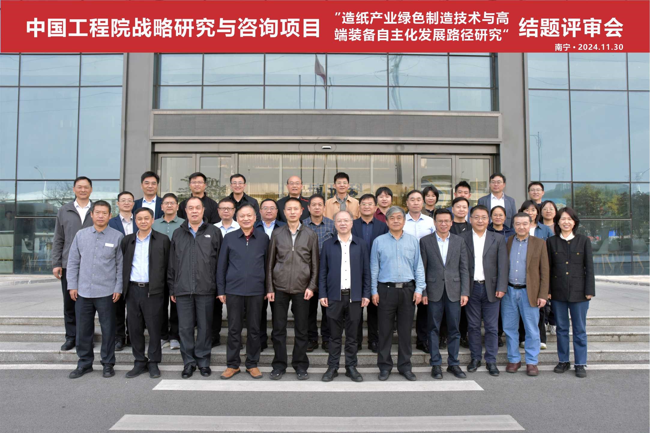 王双飞院士主持的中国工程院战略研究与咨询项目重点项目“造纸产业绿色制造技术与高端装备自主化发展路径研究”结题评审会在南宁顺利召开。咨询专家北京工商大学孙宝国院士、四川大学石碧院士、中南林业科技大学吴义强院士、项目负责人王双飞院士、中国工程院环境与轻纺学部联络员蔡昌金,以及来自中国造纸学会、相关高等院校、行业龙头企业的专家等共60余人参加会议。会议开幕式由覃程荣院长主持,项目汇报和讨论环节由孙宝国院士主持。