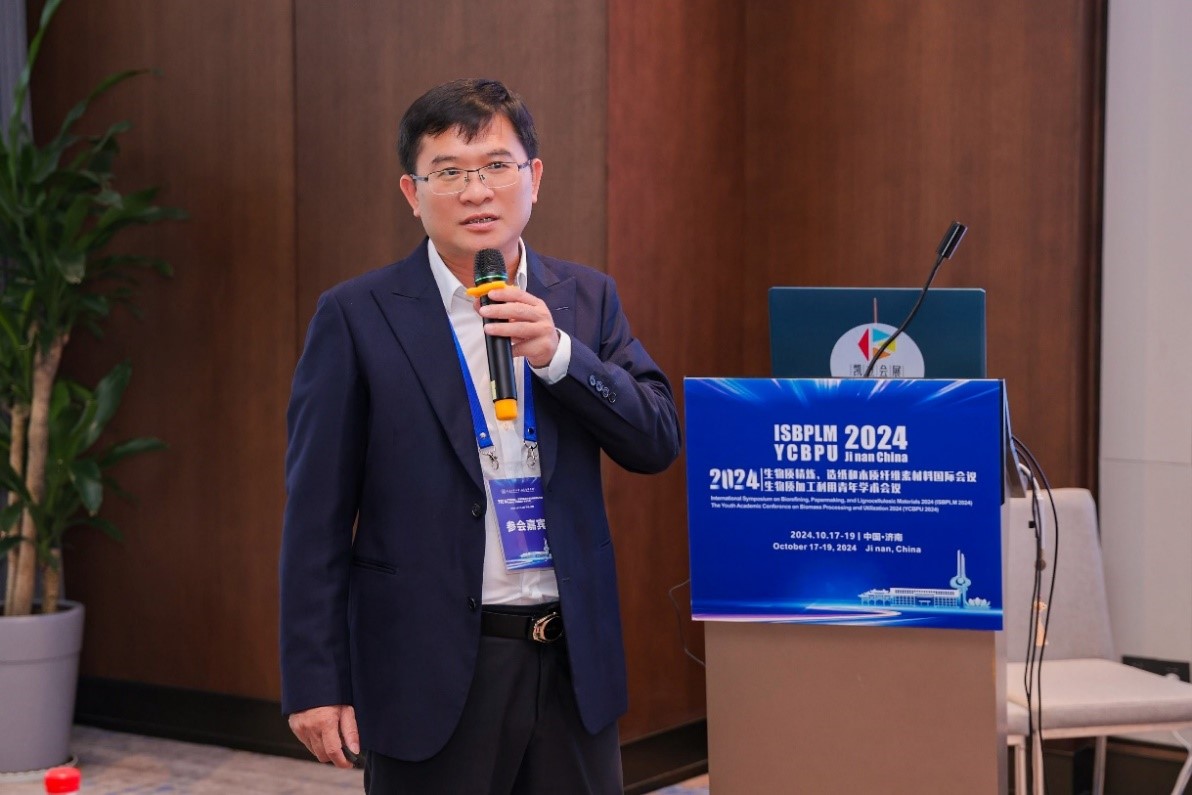 覃程荣教授做分会场会议主持人,并以木质纤维基功能材料开发及其在含油污泥处理中的应用为题进行了分会场主题报告;