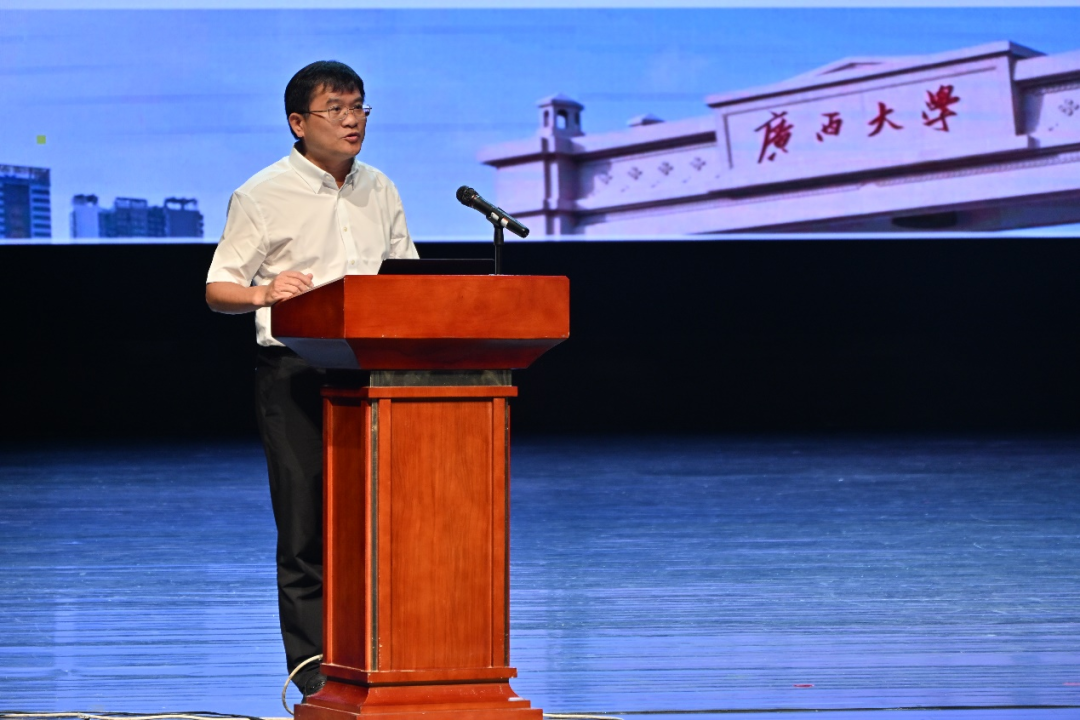 院长覃程荣代表学院向全体新生表示热烈欢迎和诚挚祝贺,详细介绍办学特色、学科优势与科研成果,勉励同学们珍惜时代赋予的机遇,把握大学宝贵时光,在轻工这片创新沃土上砥砺前行。覃程荣院长指出,大学是人生新的起点,也是个人能力成长与价值塑造的关键阶段。他鼓励同学们尽快完成角色转变,树立远大目标,在科研创新、实践探索与社会服务中勇敢迎接挑战、不断超越自我,用奋斗书写无悔青春,用行动回应时代呼唤。